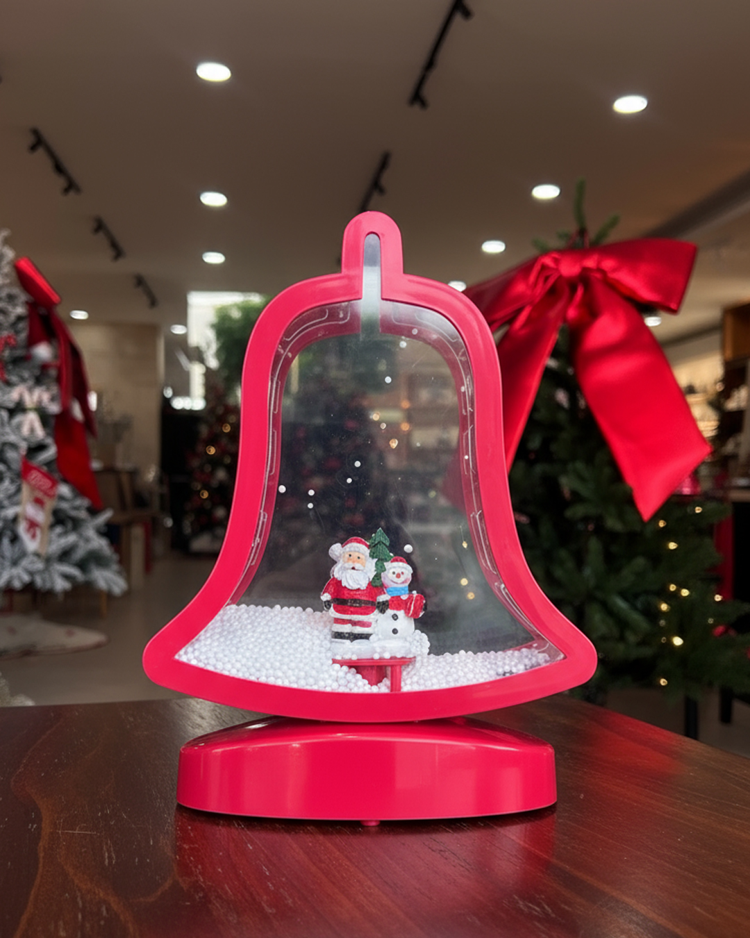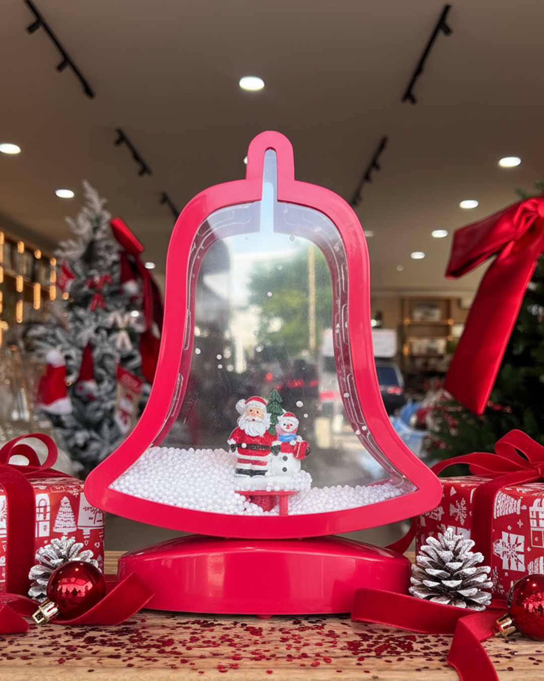 Dynamic Focal Point. Bring movement to your display with this unique 27cm Christmas Bell decoration. Featuring a "blowing" effect (glitter or snow movement), it captures attention and adds an interactive, playful element to your festive arrangement. Requires batteries (not included).
