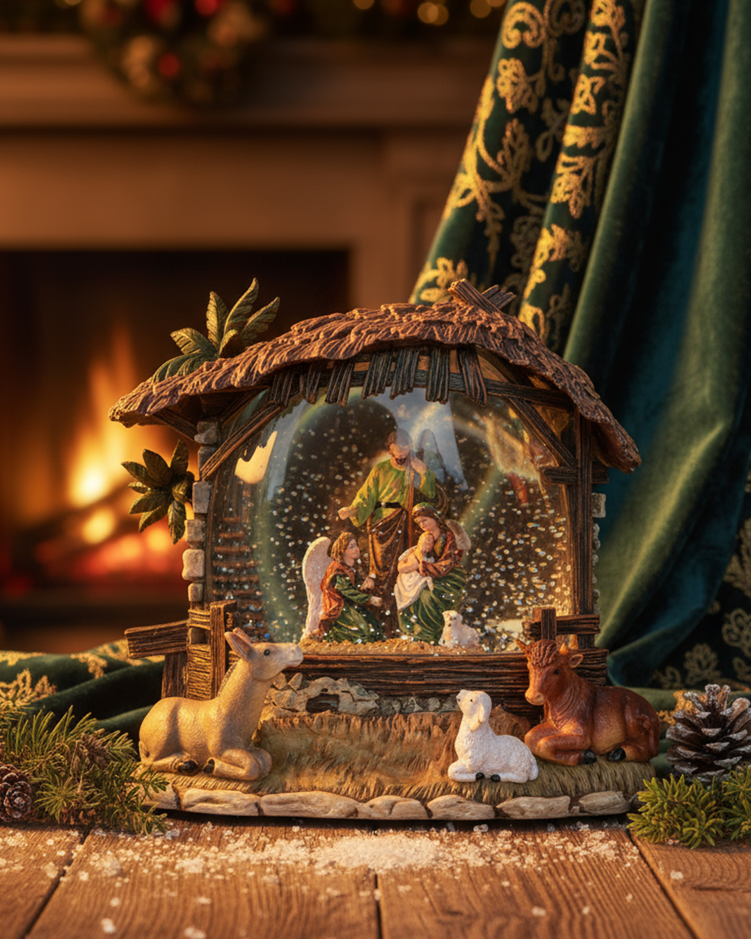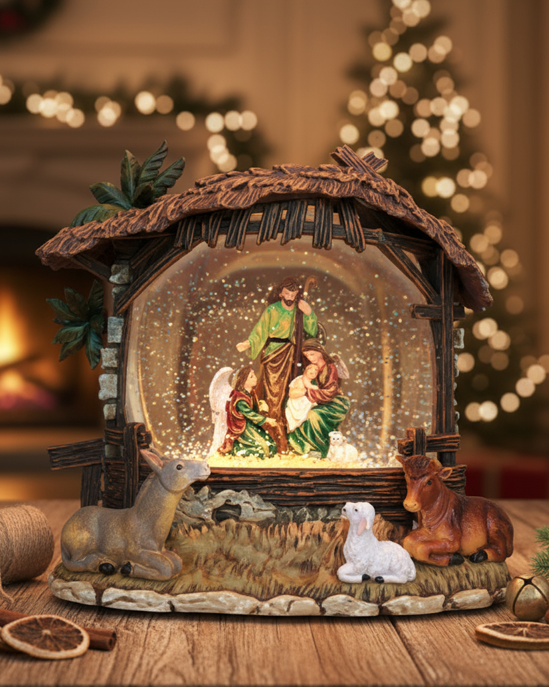 Bring a touch of the tropics to your holiday décor! This unique, illuminated piece features the Holy Family set within a majestic, intricate stable structure, complete with striking palm/coconut trees and a brightly glowing star on top. Standing 22cm tall, this item (code 1050) is a truly memorable, brightly lit addition to your holiday collection.