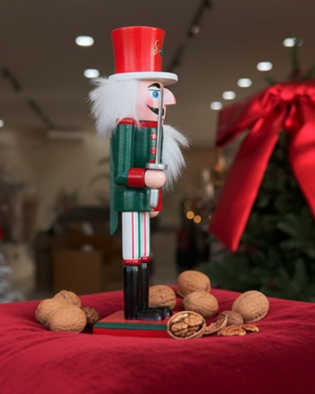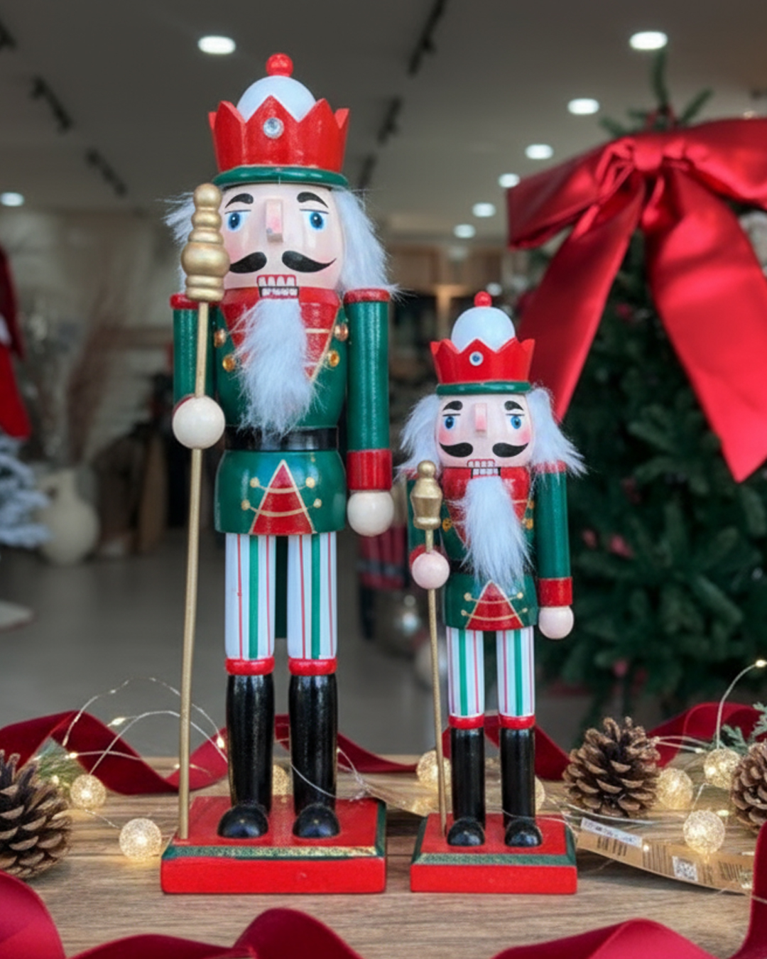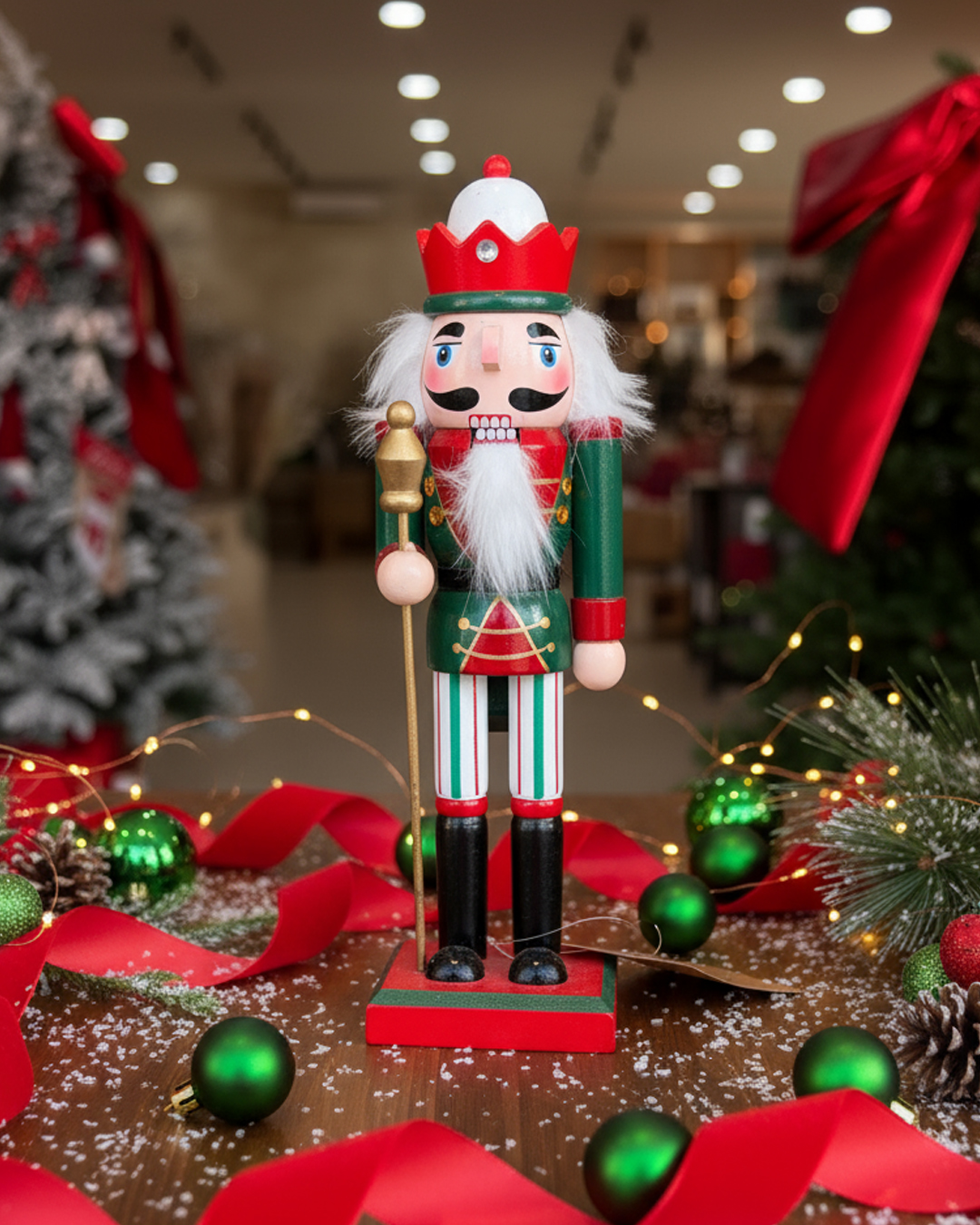 An essential piece of traditional holiday décor. This Nutcracker figure stands 25cm (approximately 10 inches) tall and is dressed in classic red, green, and gold attire. Perfect for guarding your mantel or enhancing any tabletop display. This item belongs to an assortment of 4 styles (4ass) and is available in two size variants