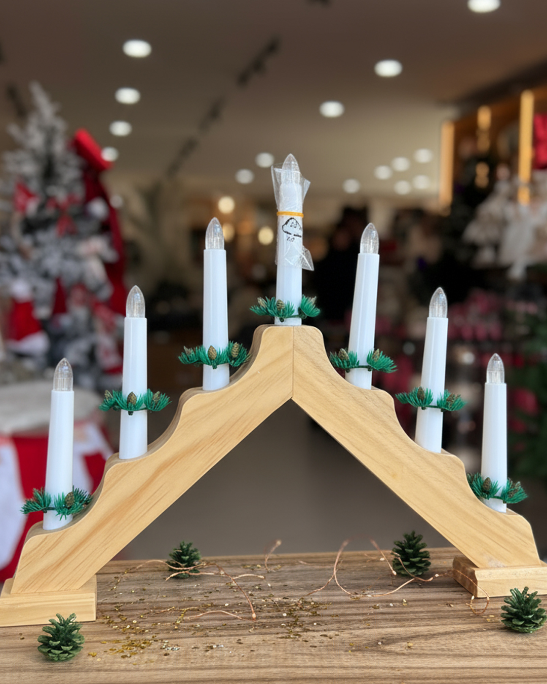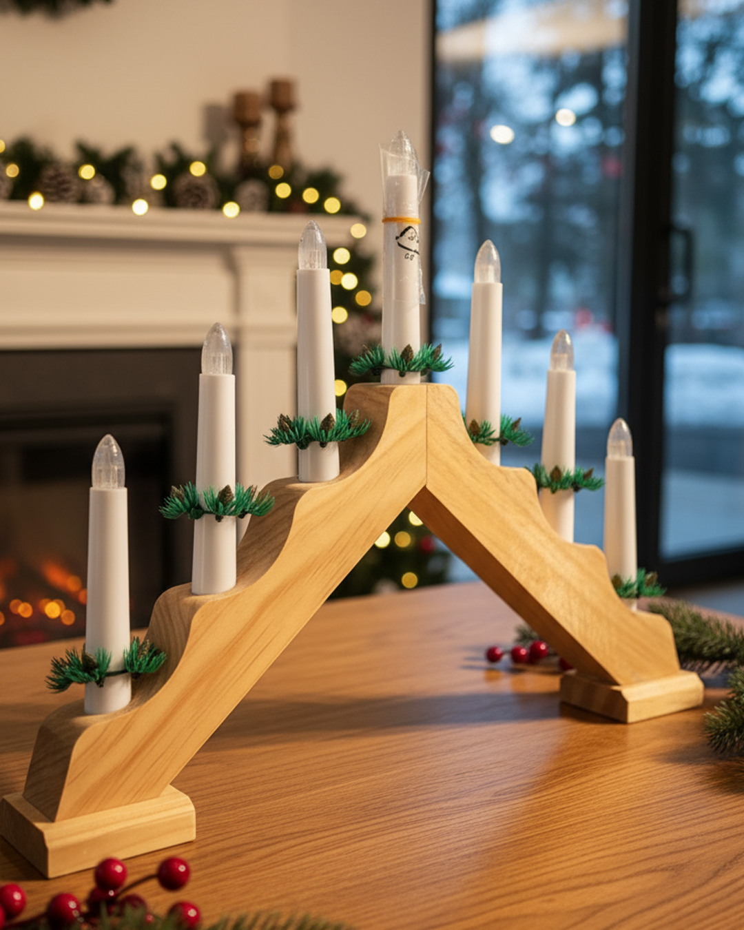 A timeless and essential piece for any traditional holiday home. This classic candle bridge decoration features a simple, elegant silhouette that works perfectly on a dining table, mantelpiece, or bookshelf.